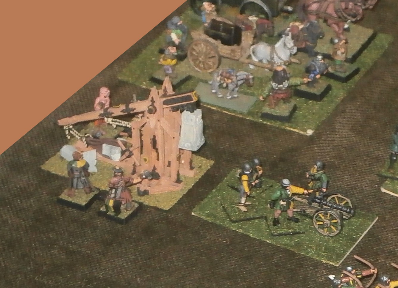 On the army’s right were the Brabanzon. Captain Lodar ‘the Wolf’ and his ensign Jean de la Salle led the company’s largest regiment, the spearmen, nearest to the centre of the line. Out to their right were the two large bodies of archers and the smaller company of veteran men-at-arms. Their small gun, which they called simply ‘the Piece’, like unto a flea compared to the dwarfs’ cannon imperial, had been placed directly in front of the trebuchet (all the better to perform its usual role as a guard for the larger engine).