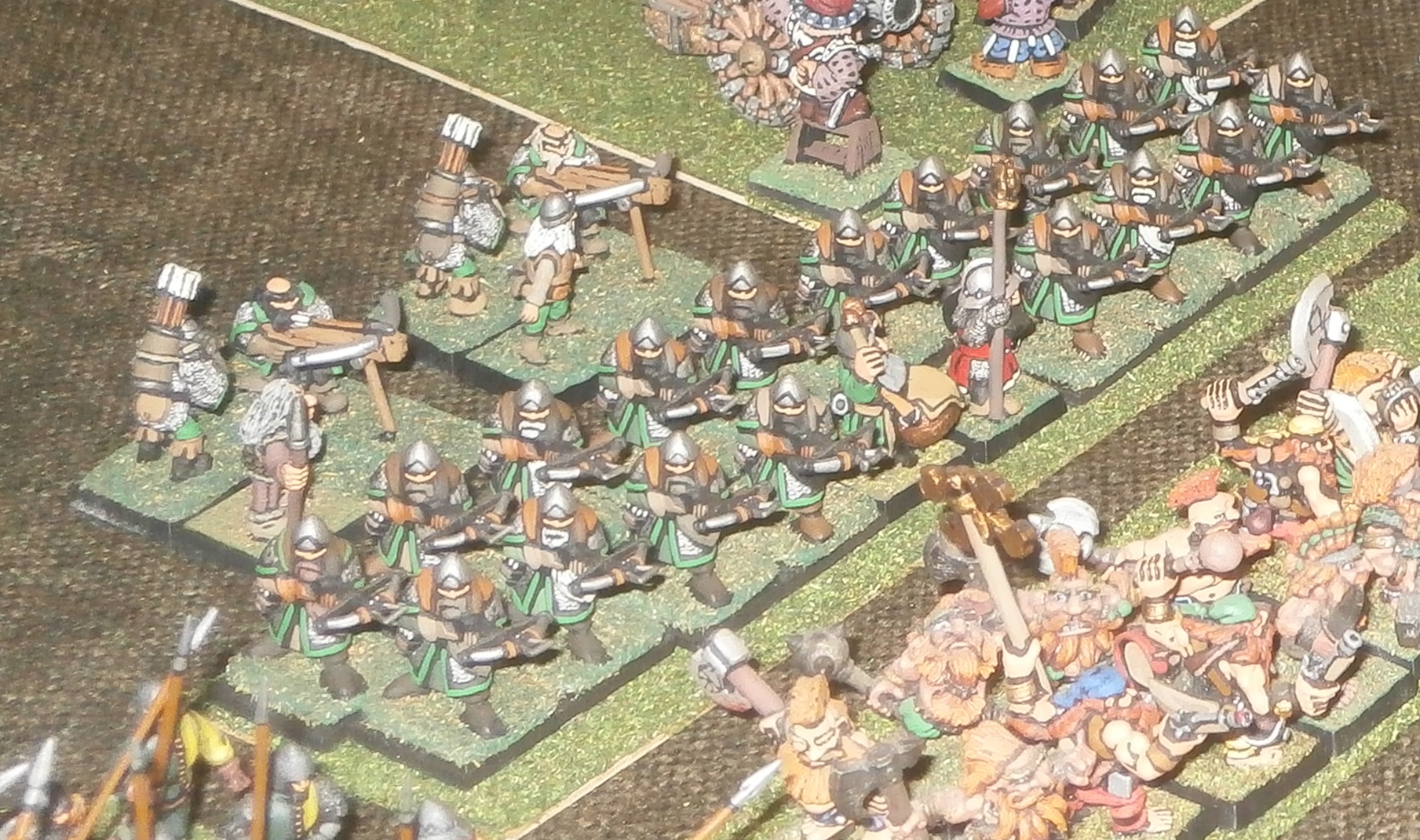 While one company of leadbelchers now brought down two of the knights riding with the young baron, the other two companies both aimed at the dwarven thunderers, killing nine of them. The remaining pair made a sorry sight indeed, but they did not run.