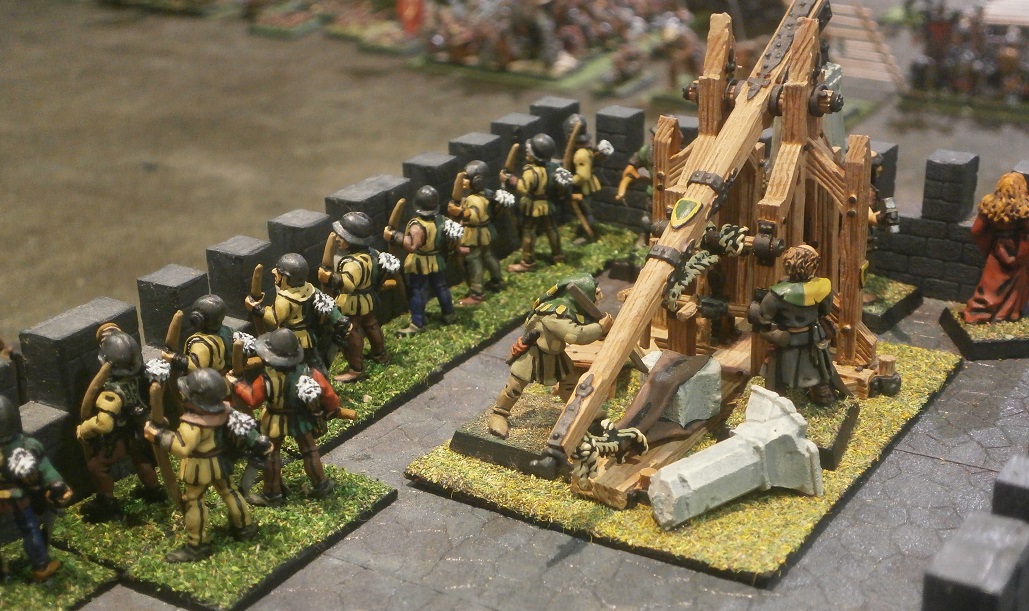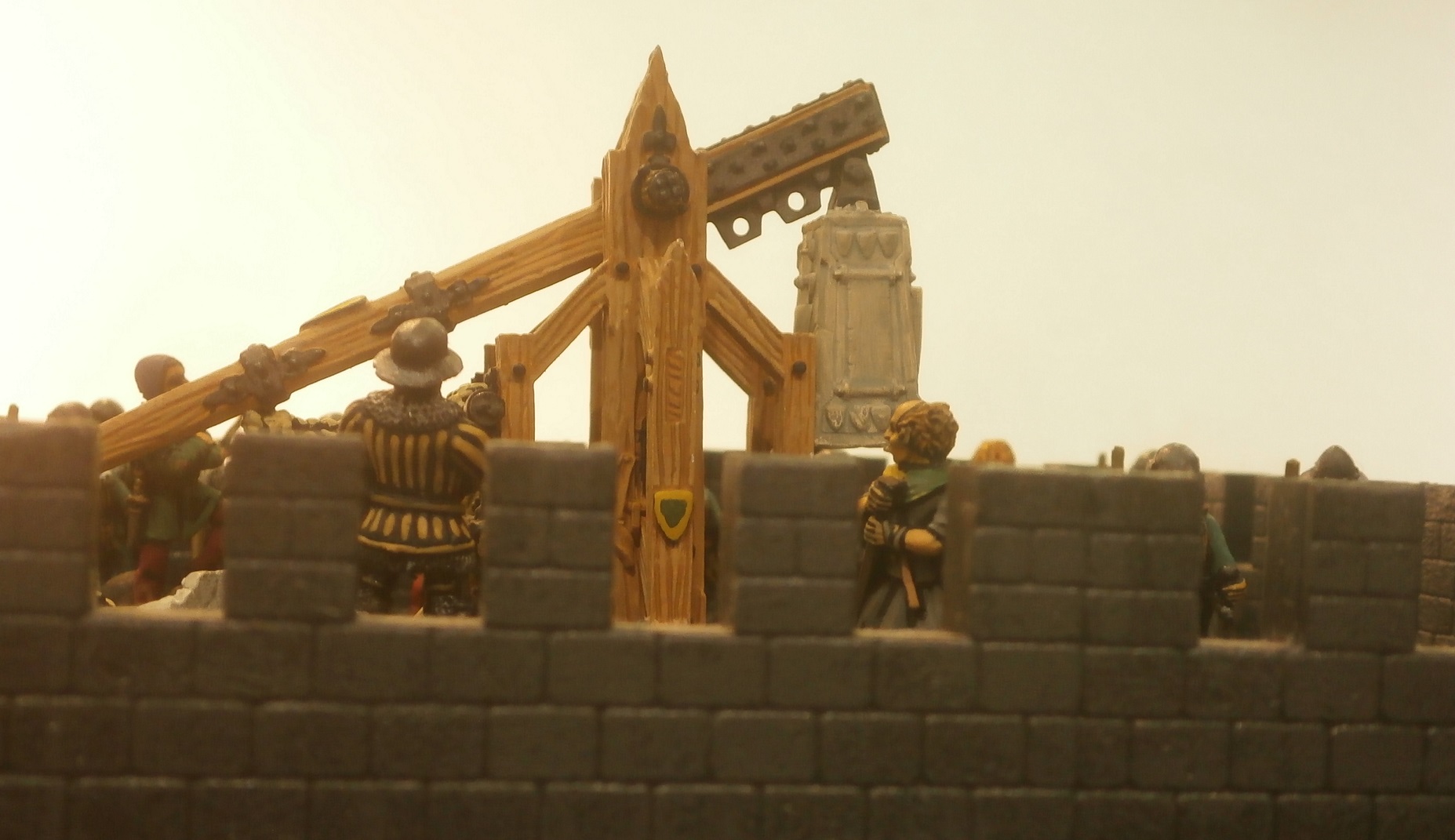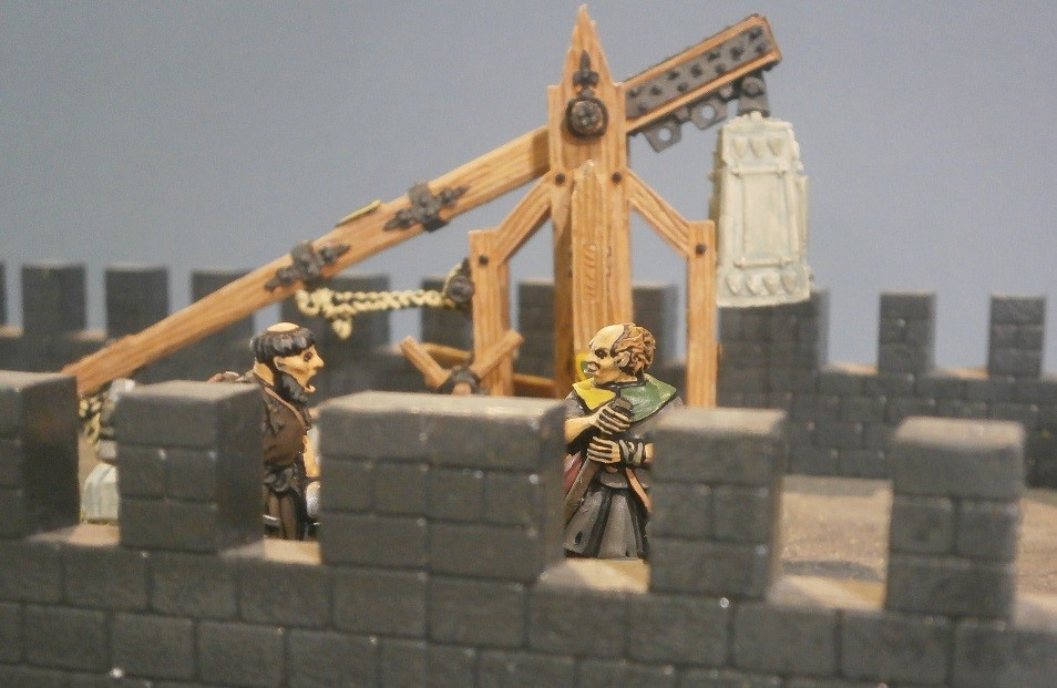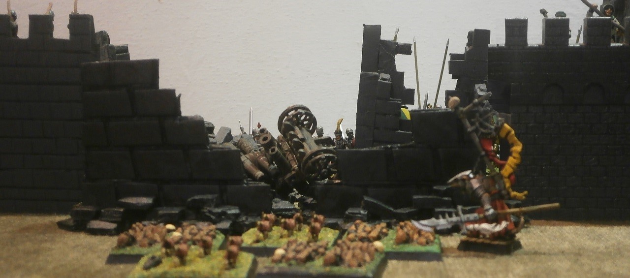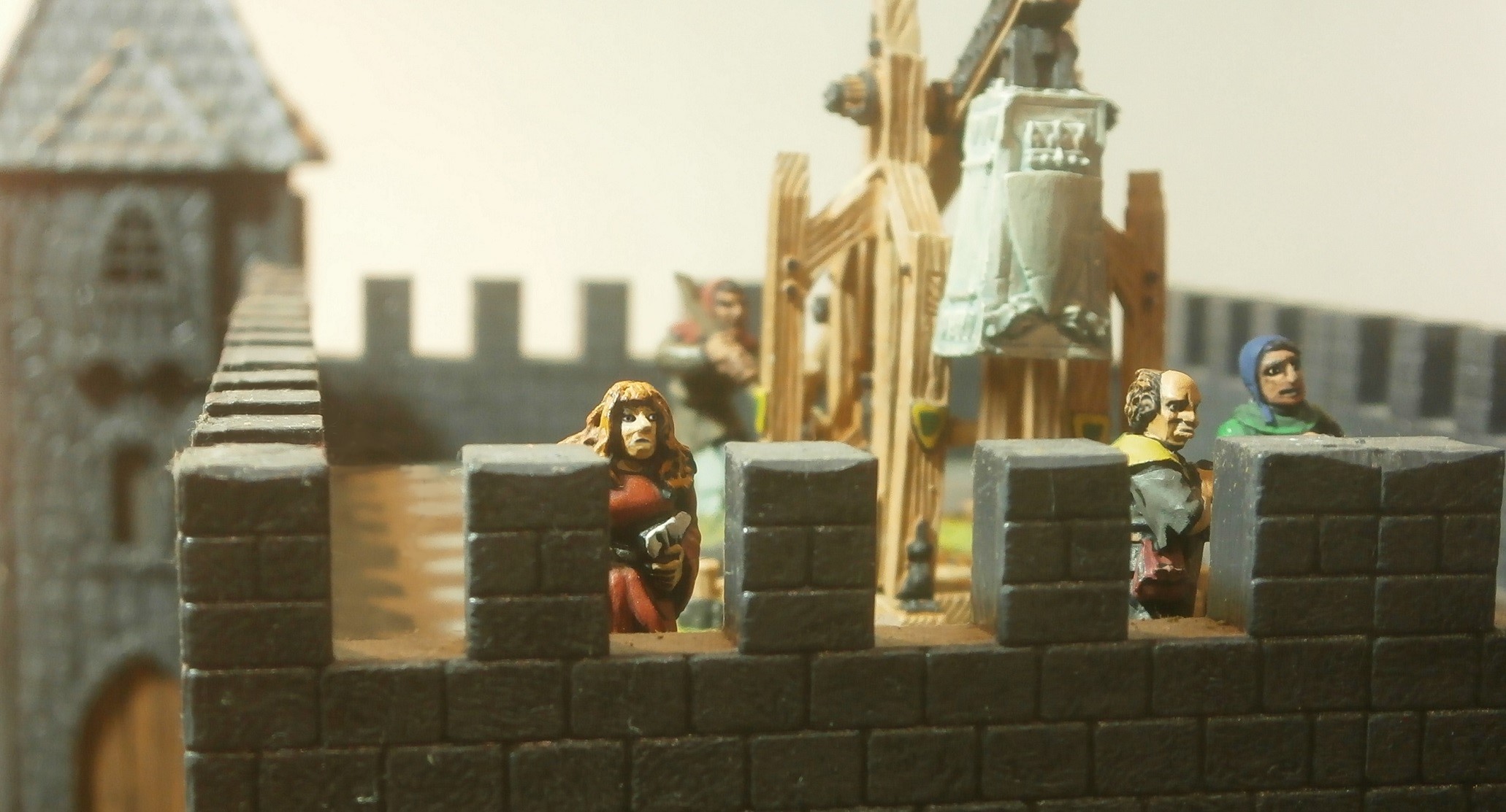 We have our own rules for assaults by ladders (not easy at all) or siege towers, although once on the defences, the fighting between sections is basically the standard fighting in buildings rules from the 8th ed’ rulebook.