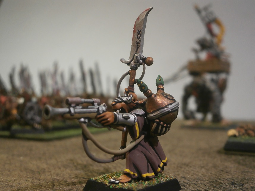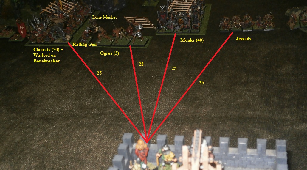 The clan also boasts two companies of 5 jezzails and some rat swarms, as well as two engineers to tend their war machines. One was back with the machines at the tunnels, supervising their extraction, but the other was here with his warpmusket.
