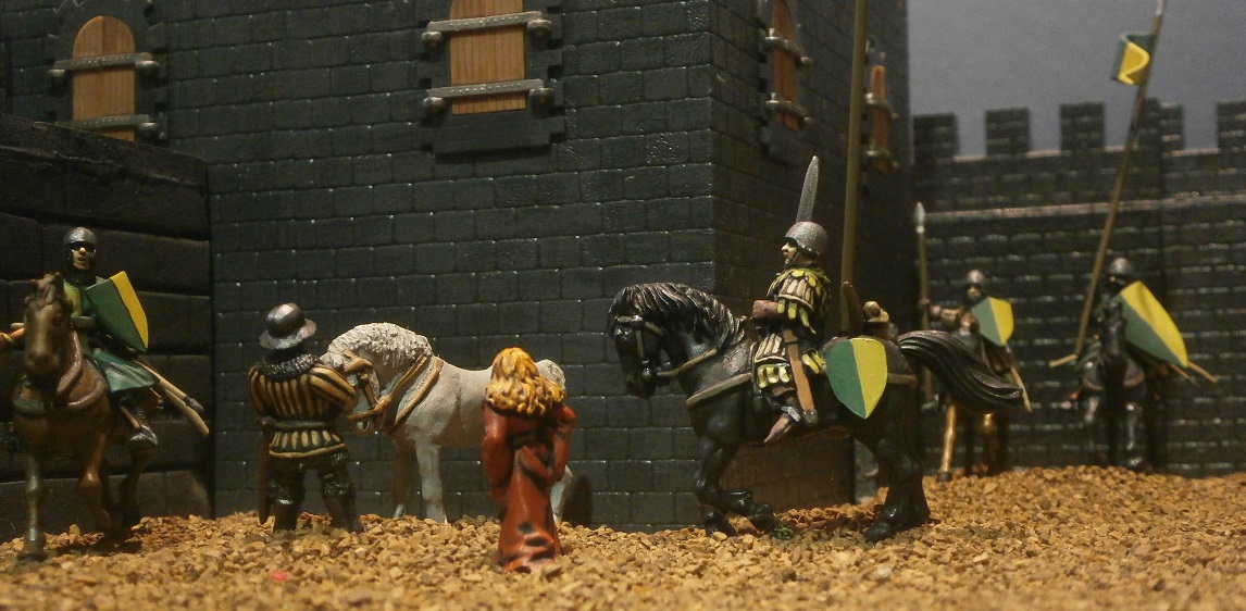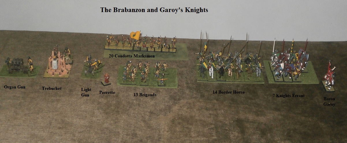 Perette, the ‘fallen damsel’ will command the force as a whole, with Baron Garoy commanding his little company of knights. The reasons for this will probably come out in the battle report story.