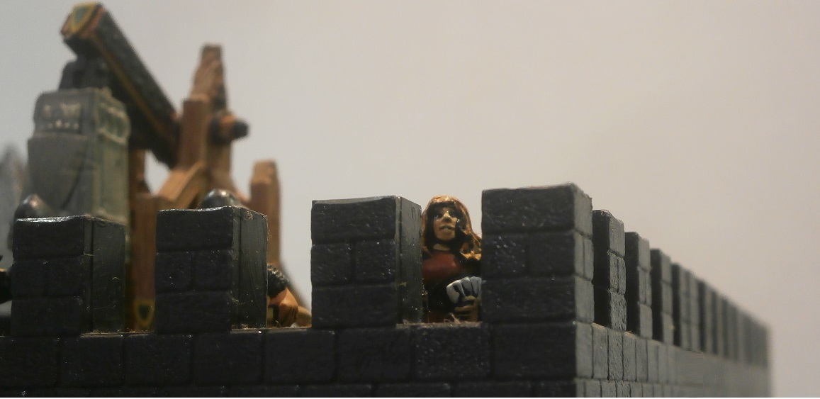 This made her think of the wall to her right. What with the enemy so solidly massed before the gate tower, she now realised the brigand archers on that wall must have little to nothing they could shoot at, and so she strode over to that side of the tower top to shout down, “Care to join us up here boys?”