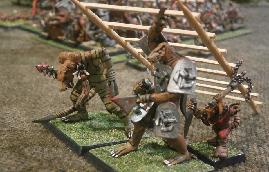 The enemy, however, looked damnably numerous to her! Directly ahead there was a large body of robed ratmen, hefting a broad ladder half as wide as the regiment itself – more like scaffolding than any ordinary ladder.