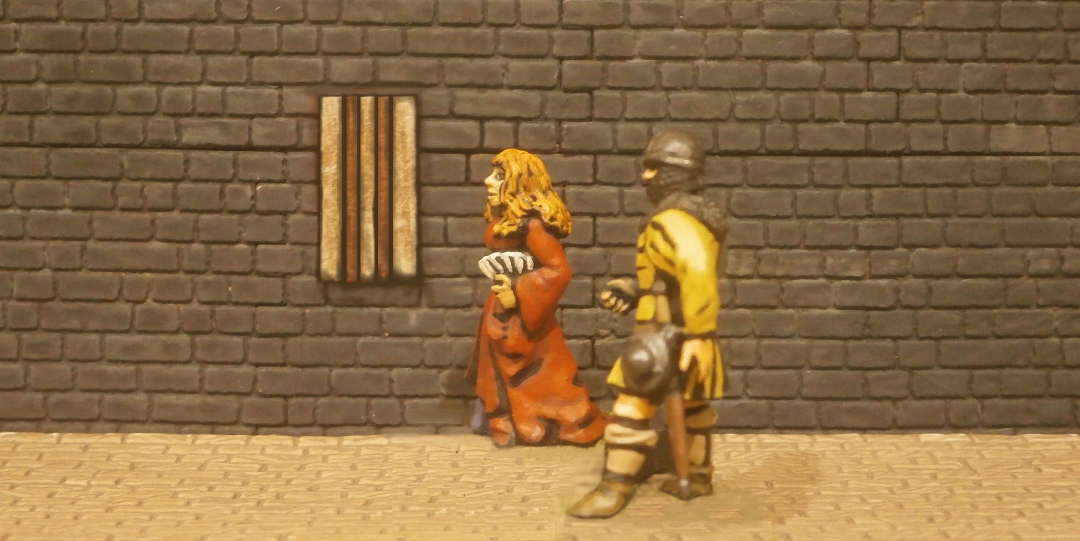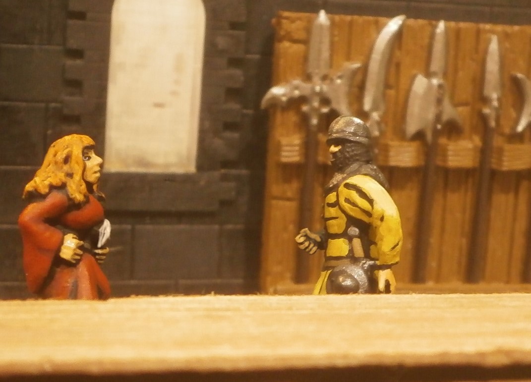 Perette is shown here, and the Brabanzon foot. She is a level 2 wizard now, so will have two fire spells. It is rare I make such unrolled for decisions or alterations for NPCs, but I will do so when events strongly suggest it. In a cause and effect sort of way. She did very well with her magic during the two assaults of Campogrotta, and had gained a new authority since then, as well as much respect. So I upped her to level 2 rather in the manner of roleplaying game experience points!