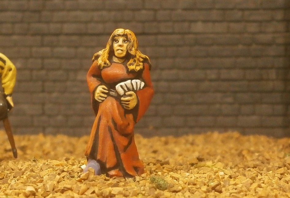 5 turns played out of 7 or 8 possible in an assault scenario. The skaven had definitely won in terms of victory conditions (i.e. controlling wall, tower and internal sections). Of course, Perette and the last of the Brabanzon could have stayed to fight to the end. But, she is an NPC in the campaign, so I talked with the player running her in the battle, discussing what she and her company might do, then I diced on the final decision. She would escape to fight another day! This I think is a good story, and even the Skaven player was happy because he enjoys the campaign story too and likes Perette’s character very much! I am now working on new figures for the band she will become a part of, and have even acquired a figure for a mounted version of her. She might just become an heroic ‘outlaw’ type, and have a few adventures left in her yet. Then again, considering the fate of young Baron Garoy in this game, she might just die in her next encounter! The campaign is driven by events in the form of choices, actions, cause and effect, and chance. I am not an ‘author’ with god-like control of the NPCs. I just dice for their decisions and responses, based on what options they might consider, then write what happens to them, as I did above!
