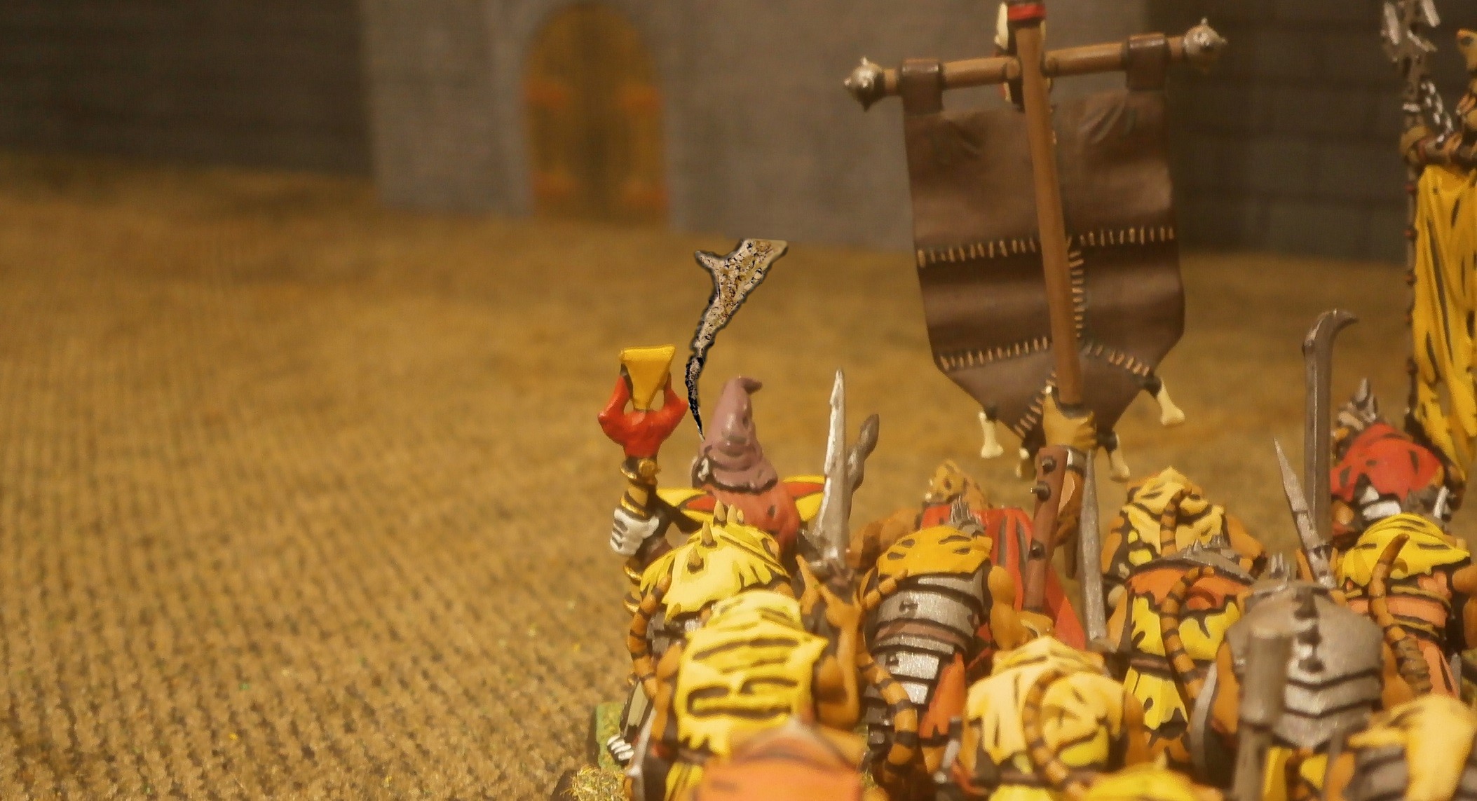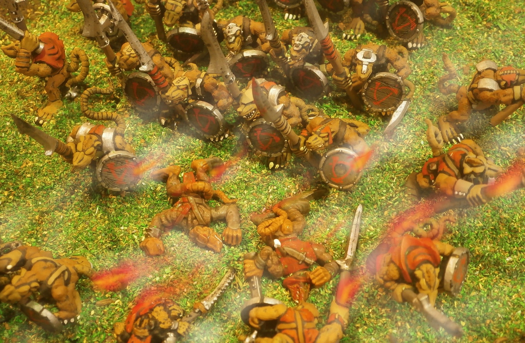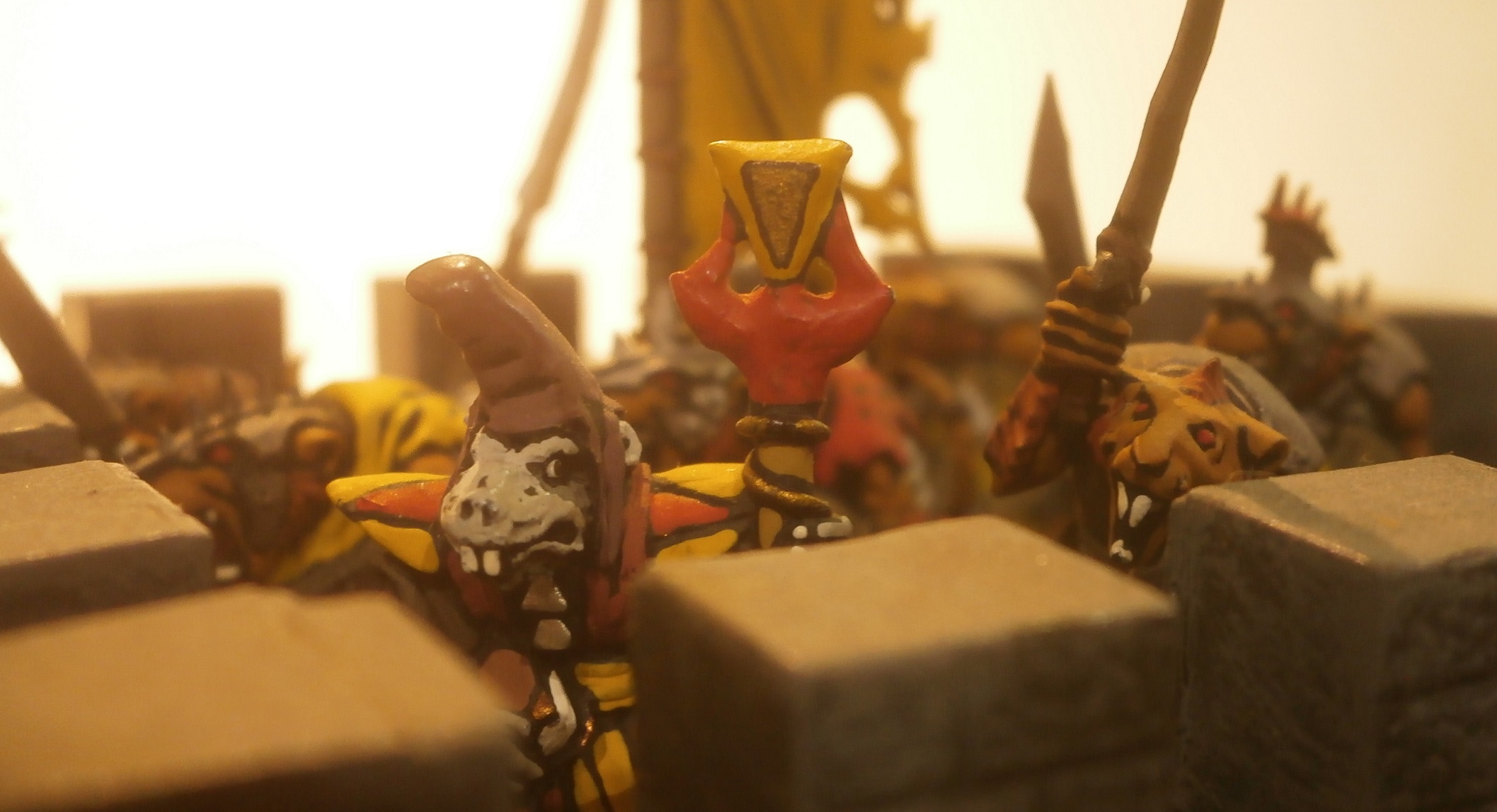 The enemy’s stone thrower had struck again. It was quick, accurate and it was threatening to ruin Lord Urlak’s plans! His screech transformed into something more furious and from somewhere the red regiment found the will to step over more bodies and march on.