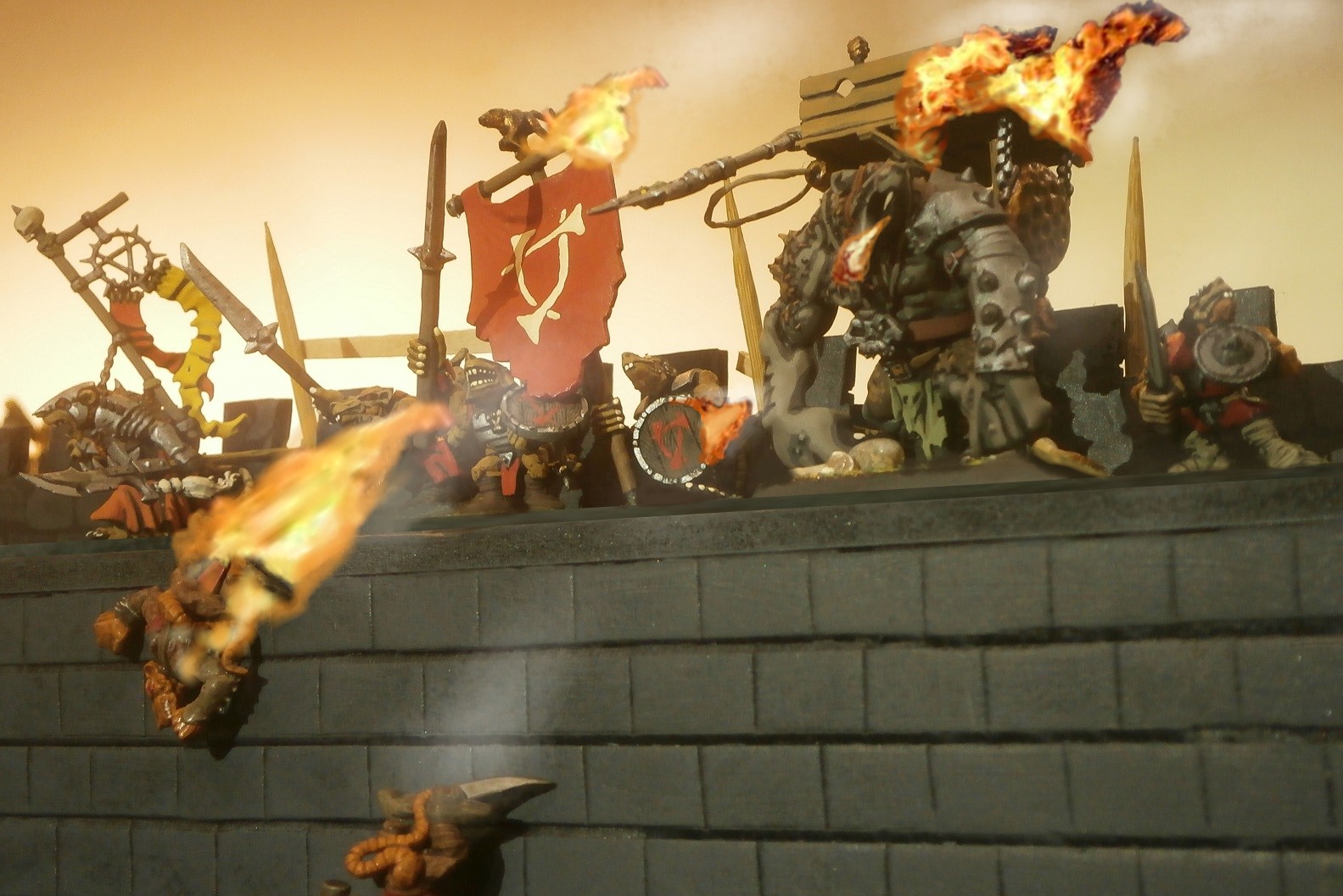 With his despair now transformed into pure fury, Lord Urlak ordered his army to charge. The already battered rat ogres were closest to the walls …