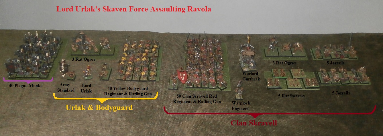 The Skaven force is a player-army, although they are my figures. The actual campaign player would command this force, while another player volunteered to command the defending NPC force. More action for everyone!