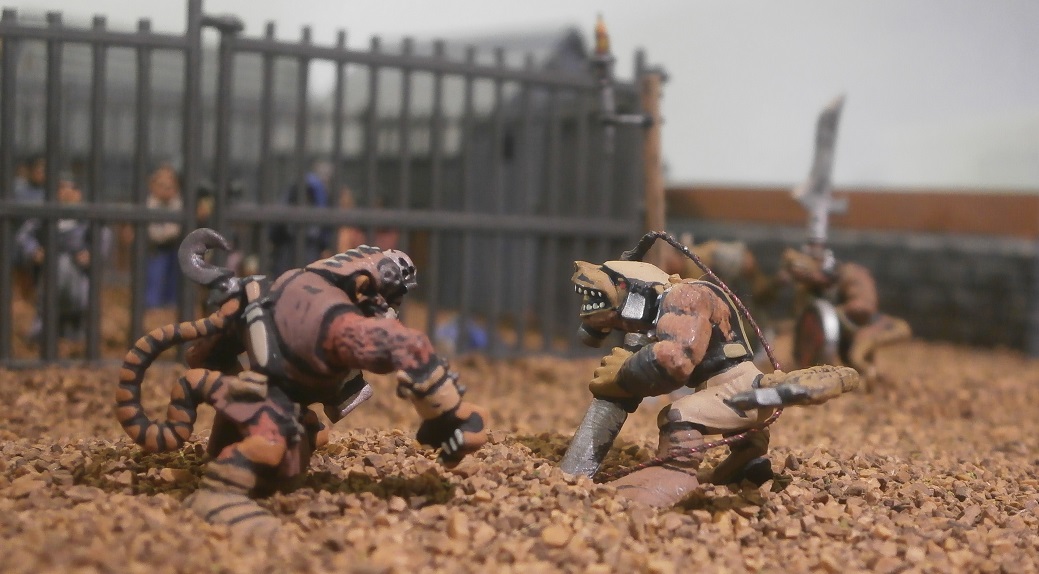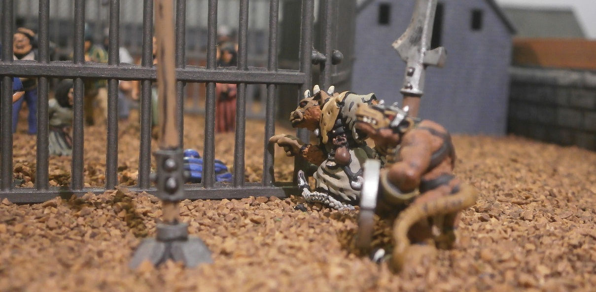 Momentarily satisfied that at last the order had been delivered and apparently accepted, Gradger looked over at the iron-railed pen. He was confused. It would be sufficient to hold meat animals like swine and goats, but surely, if they tried, the manthings could climb over? Then he noticed two of the overseers’ servants close the cage, and inside, a manthing lying prone, and he understood immediately what happened to those foolish enough to attempt to climb the iron railings – one sharp thrust of a halberd and the attempted escape would be ended.