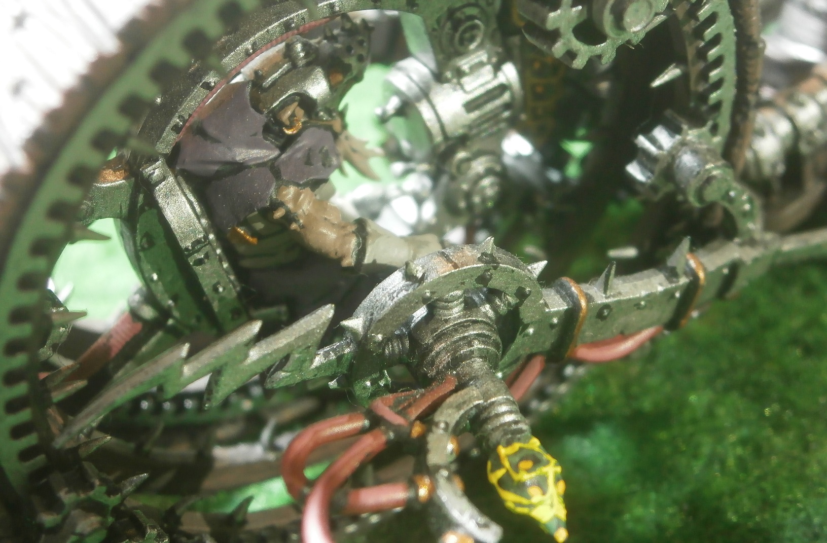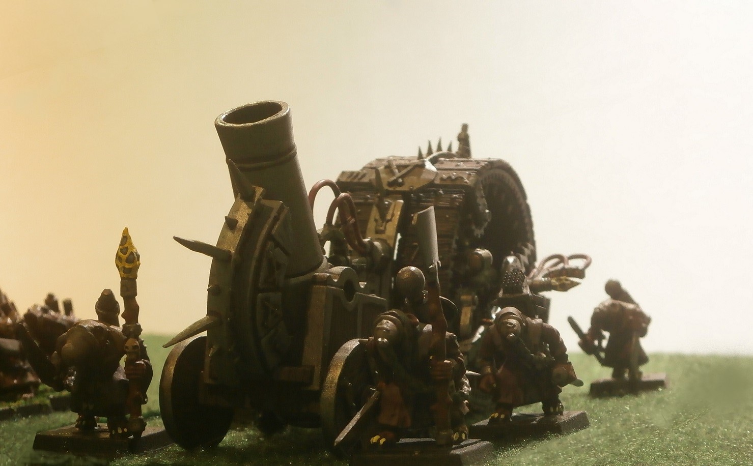 Even if the bombard suffered no fault, then mere proximity to its peculiarly poisonous ammunition was enough to sap the life from all forms of flora and fauna, and any unprotected warriors. It was therefore considered best, by all who had a say in the matter, that the slaves should be the ones to suffer the consequences of its deadly caress. Of course, the bombard’s protectively clothed escort – its attendants and guards – had to be close to it, but as they they breathed filtered air and shielded their eyes with thick, tinted lenses, their proximity was made bearable.