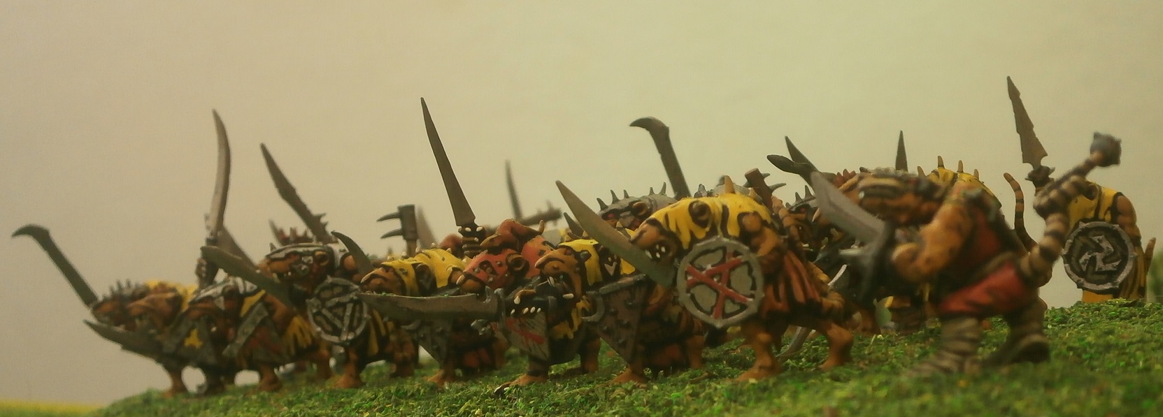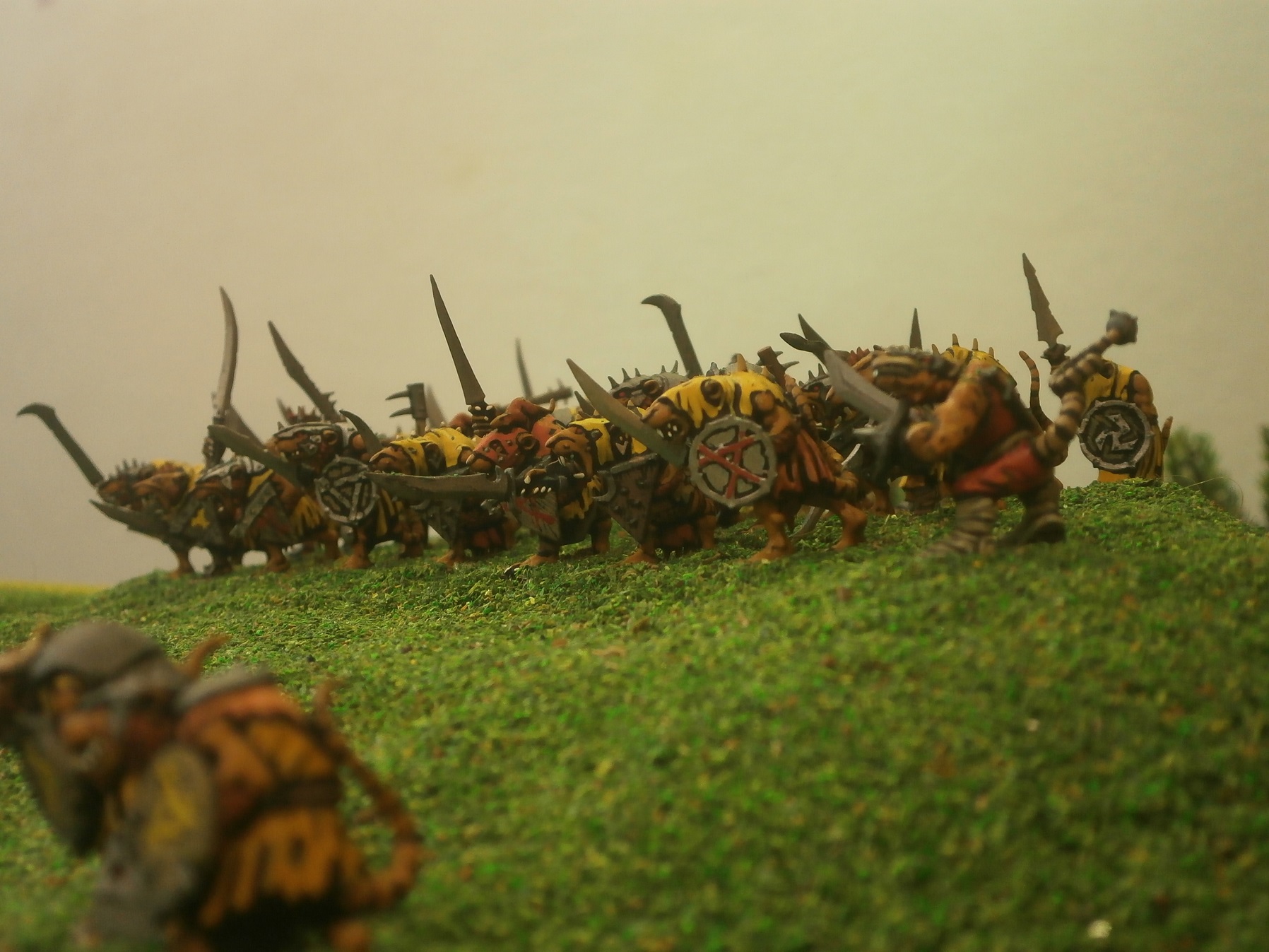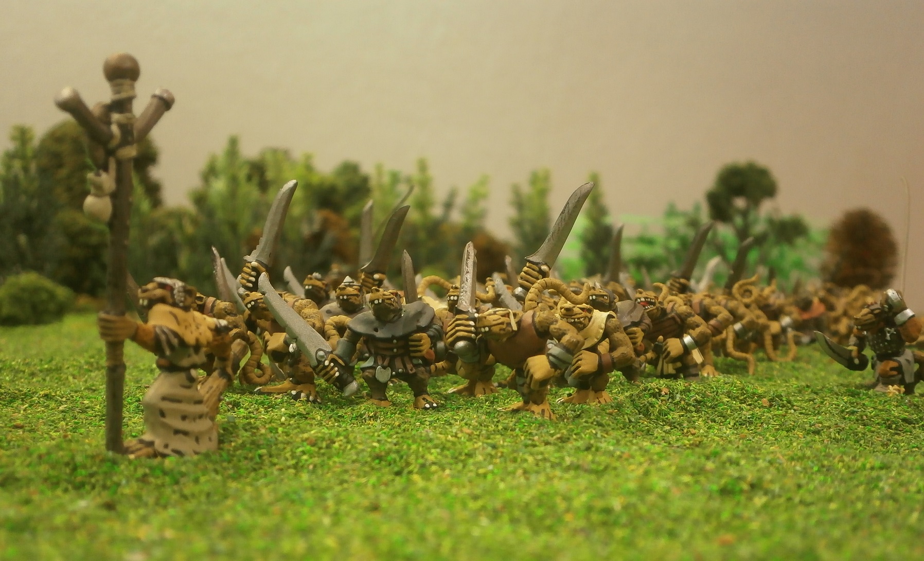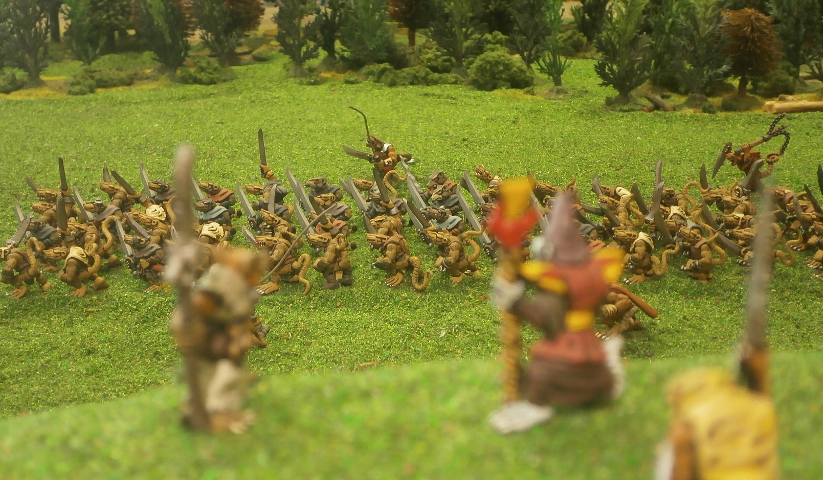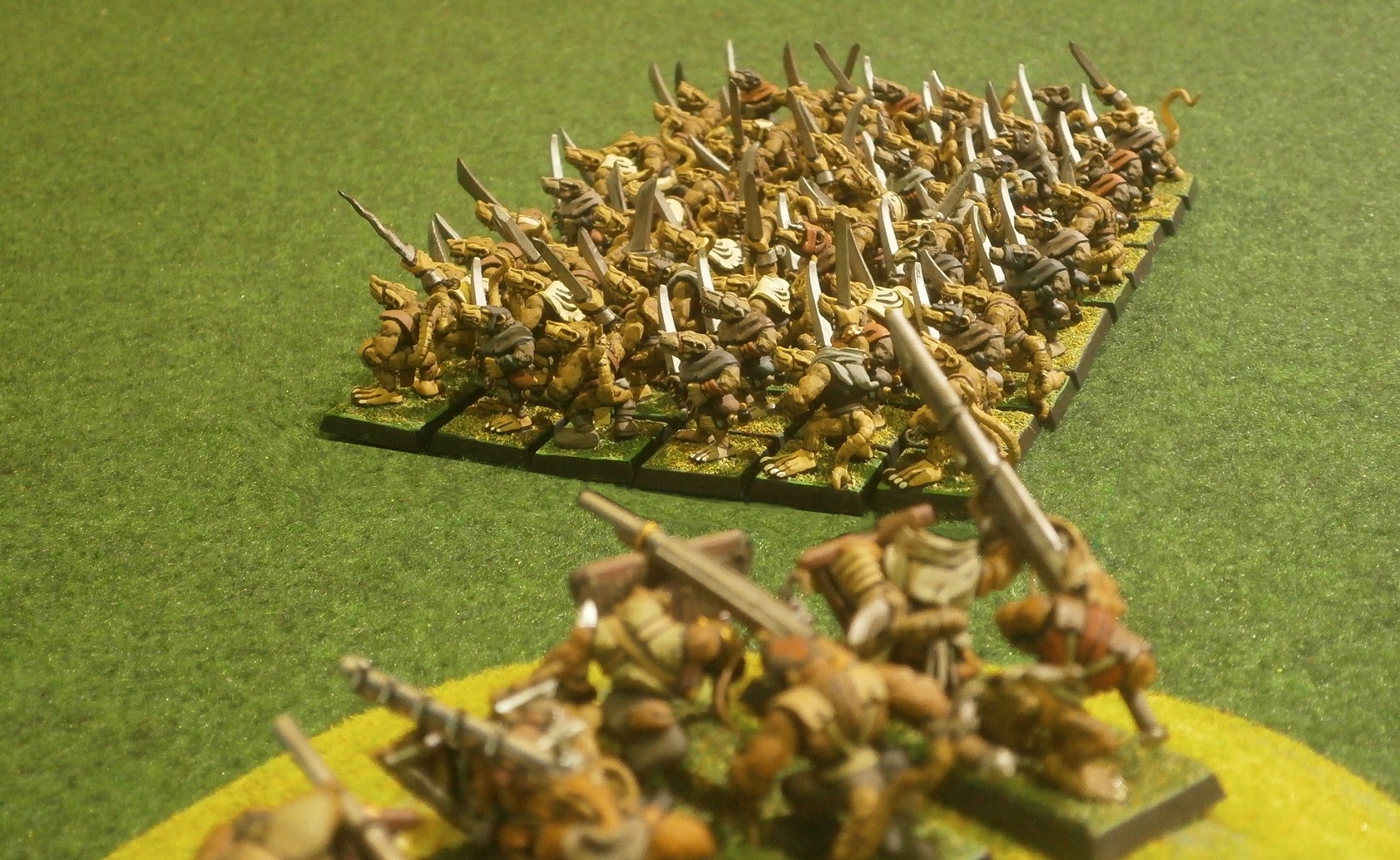 First to heave into view were the warriors of Clan Fiddlash’s ‘Red Jullgak’ Regiment. Armed with barbed spears and bearing round, iron-rimmed shields, they marched in good order, the sound of their hissing and snarling mingled with the clattering of their armour and gear, both louder than the noise their footfalls made upon the soft ground.