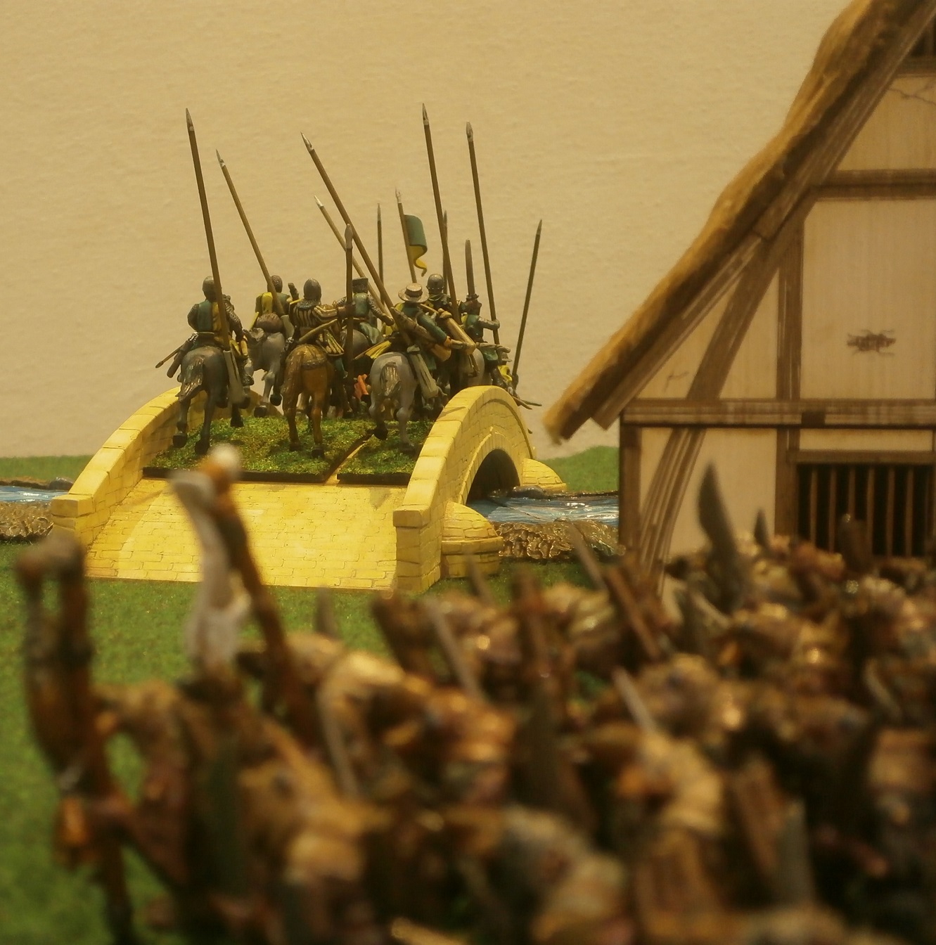 As they departed several other enemies arrived. Both of the other light horse companies had received word of the force approaching the river and had galloped post-haste to the bridge. The second company of mounted Compagnia crossbowmen were already upon the southern side of the river, and so came from the ratmen’s left …