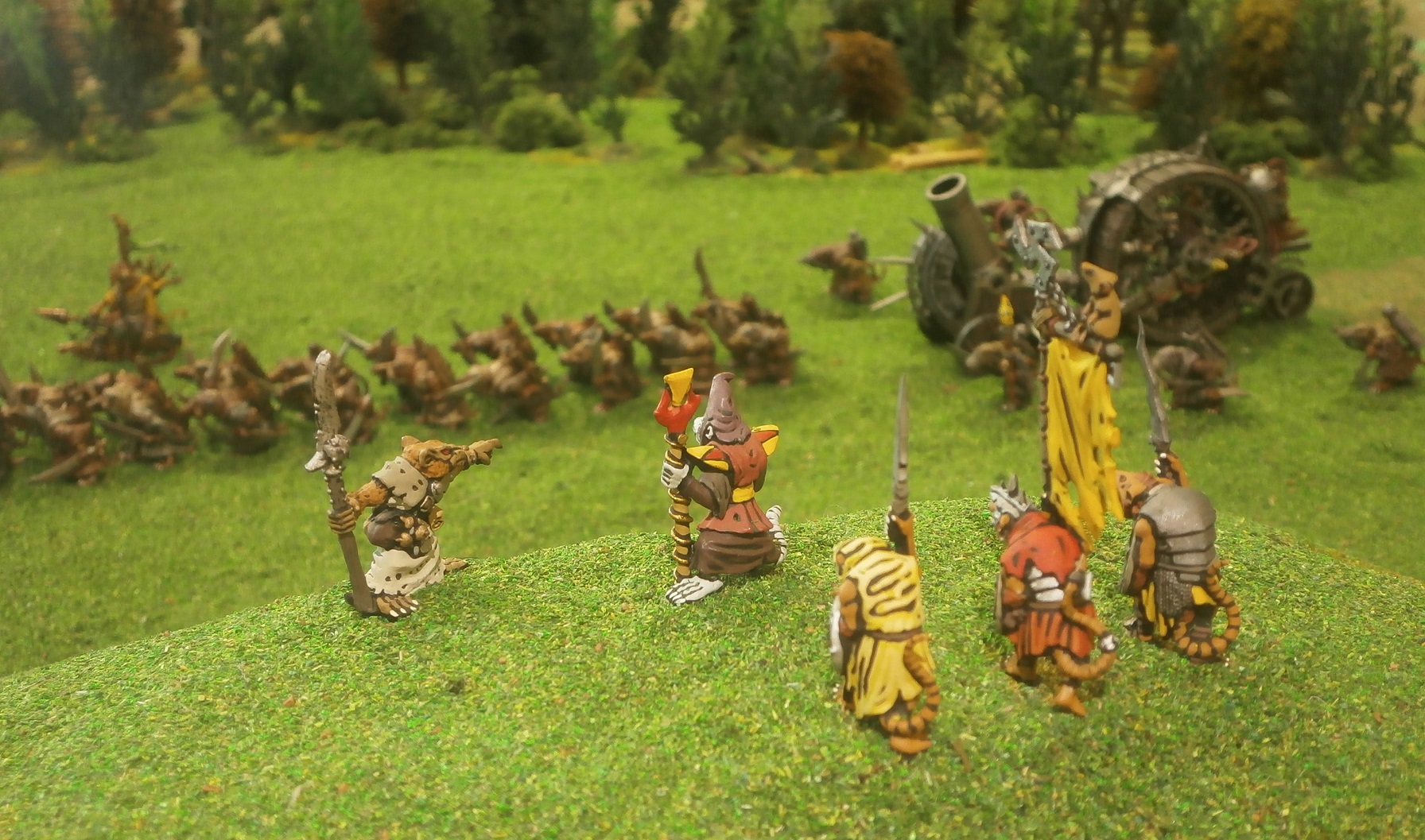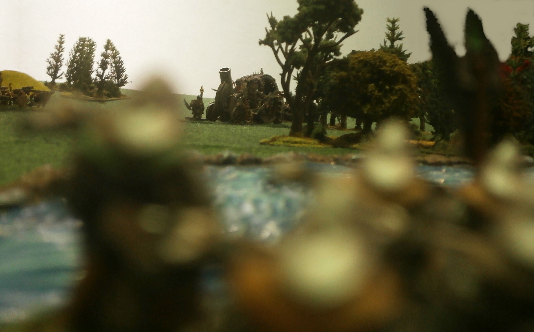 Meawhile, a newly arrived regiment of Karak Borgo quarrellers were marching up the river’s edge (being part of Narhak, the Thane of Dravaz’s Campogrottan contingent), there to further threaten the bombard’s demise.