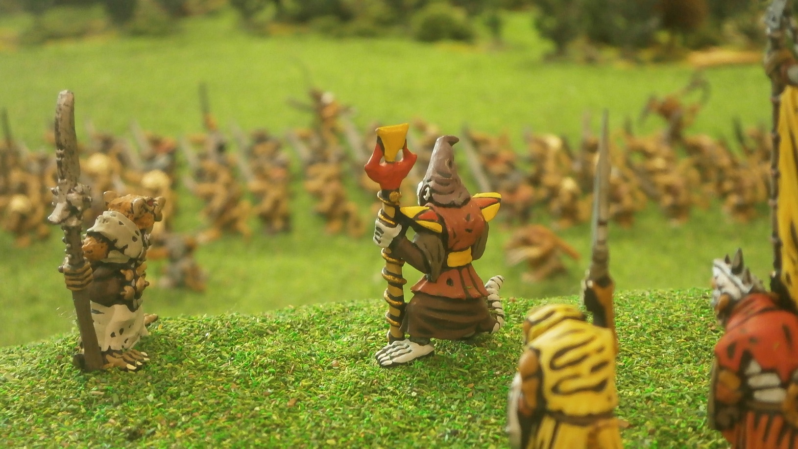 “Great and most noble lord,” hissed the scout, “See, see? How they push and shove? How those at the back strain and strive to march onwards. They are eager-keen for the battle-fight, yes?”