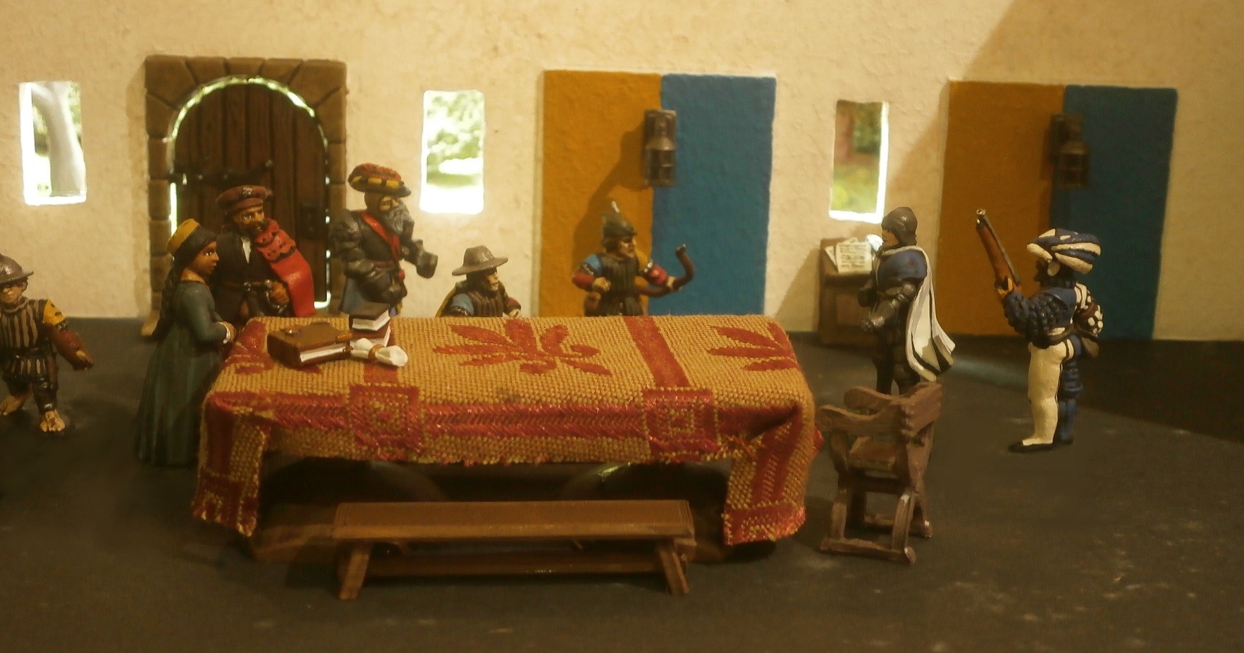 The young lord was accompanied by a single guard, armed with a handgun, although he had travelled with a large company of similarly armed soldiers. Perhaps, if he had attempted to bring more guards to the meeting, then objections may have been raised. But no-one thought to complain about a single companion, as such might be considered a necessary servant to accompany a nobleman, with duties beyond acting merely as an armed escort.