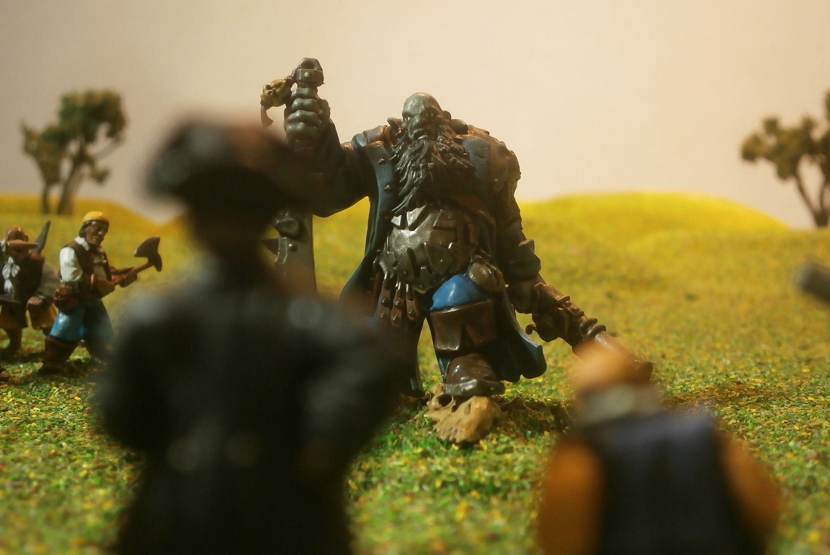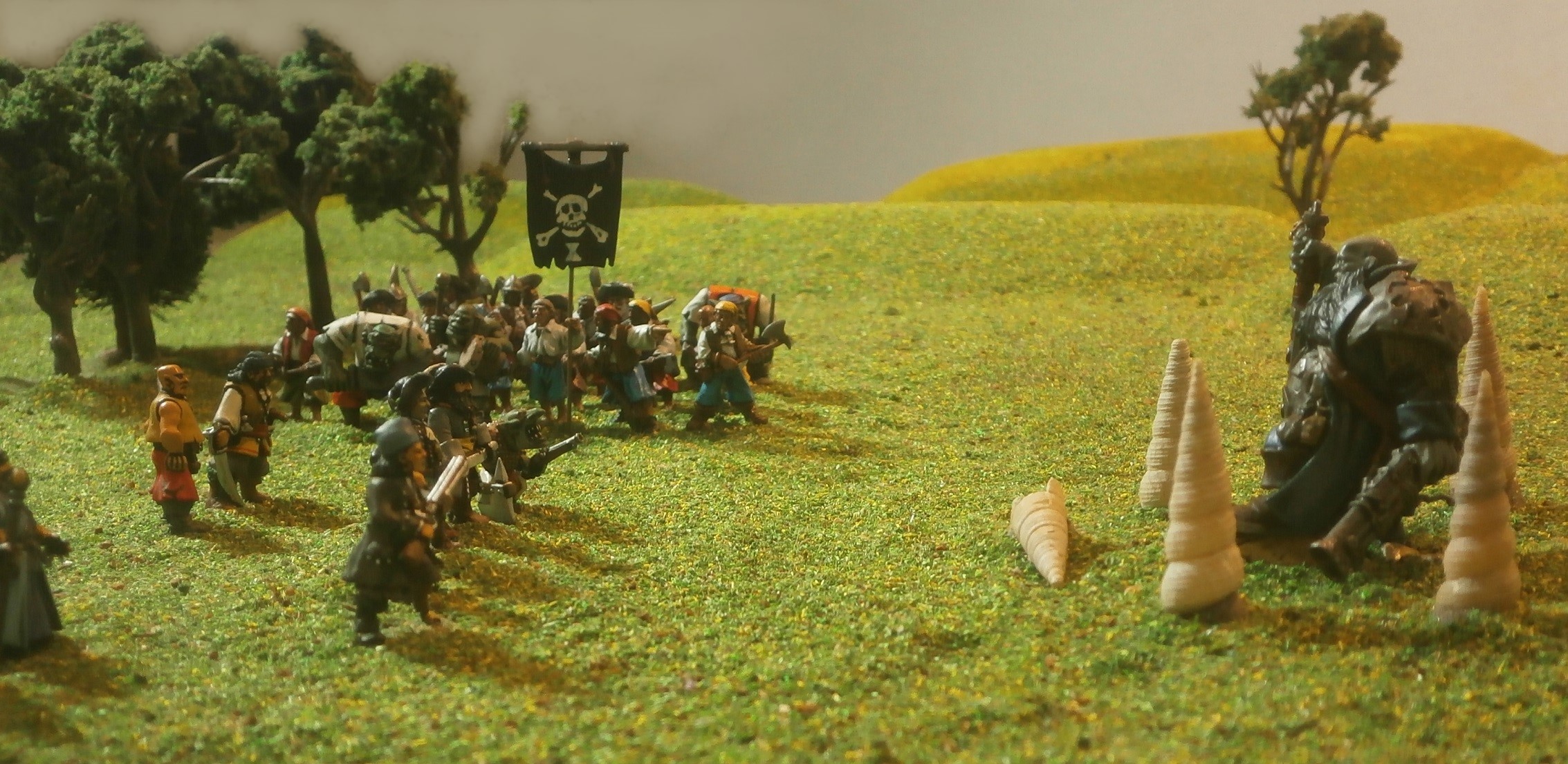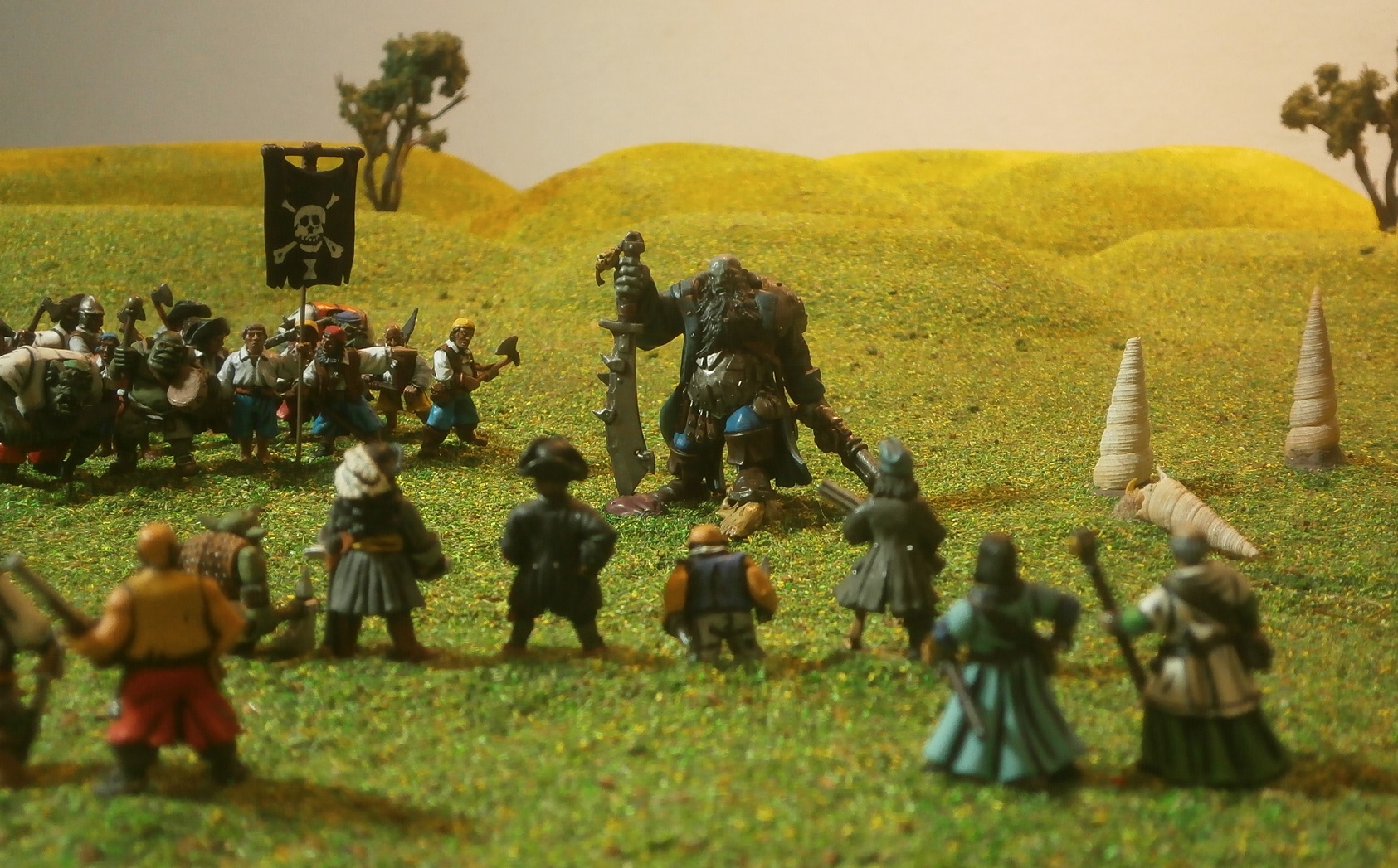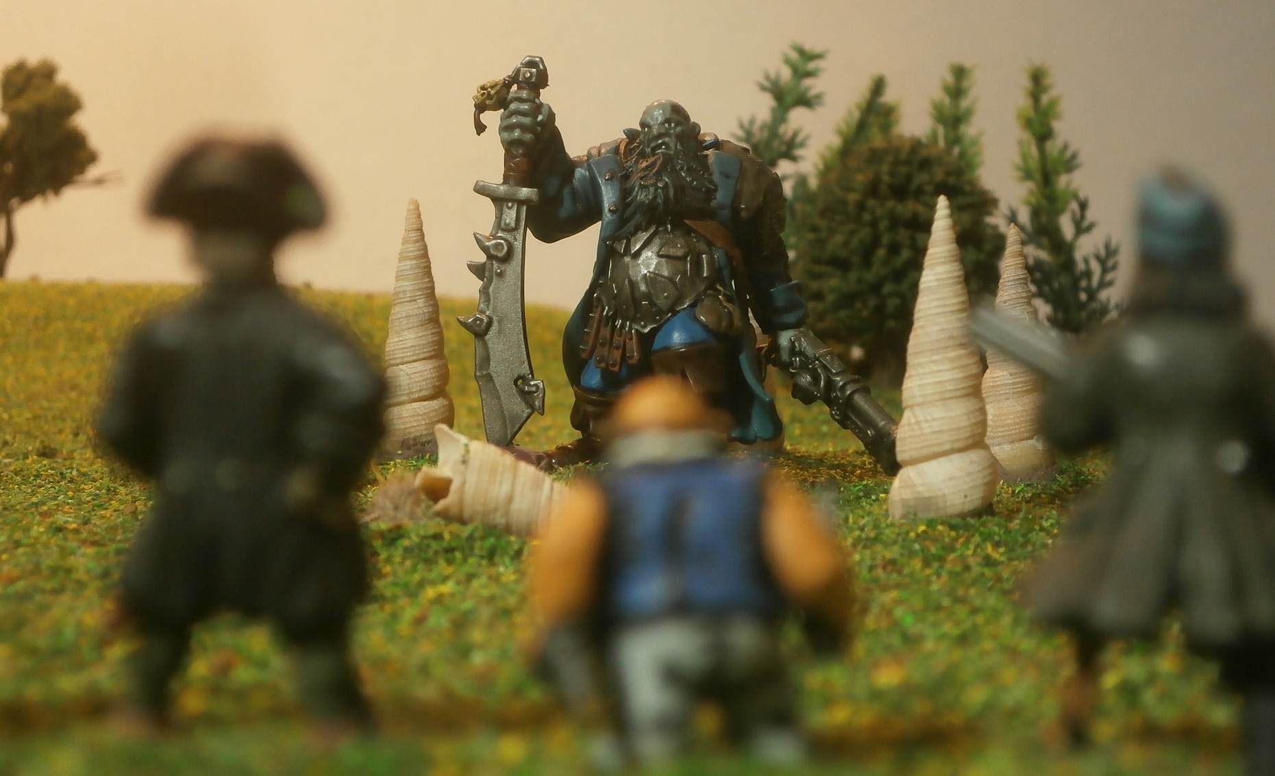 His blade alone was the length of a boarding pike, and his piece, held like a pistol, was akin in size to a swivel gun, and not one of the smaller ones. He wore an iron belly-plate, as did so many ogres, which might be supposed a hazard for a seafarer, considering how much quicker he would sink should he ever enter the water, but then his general bulk, heavy woollen coat and huge leather boots would hardly prove conducive to floating.