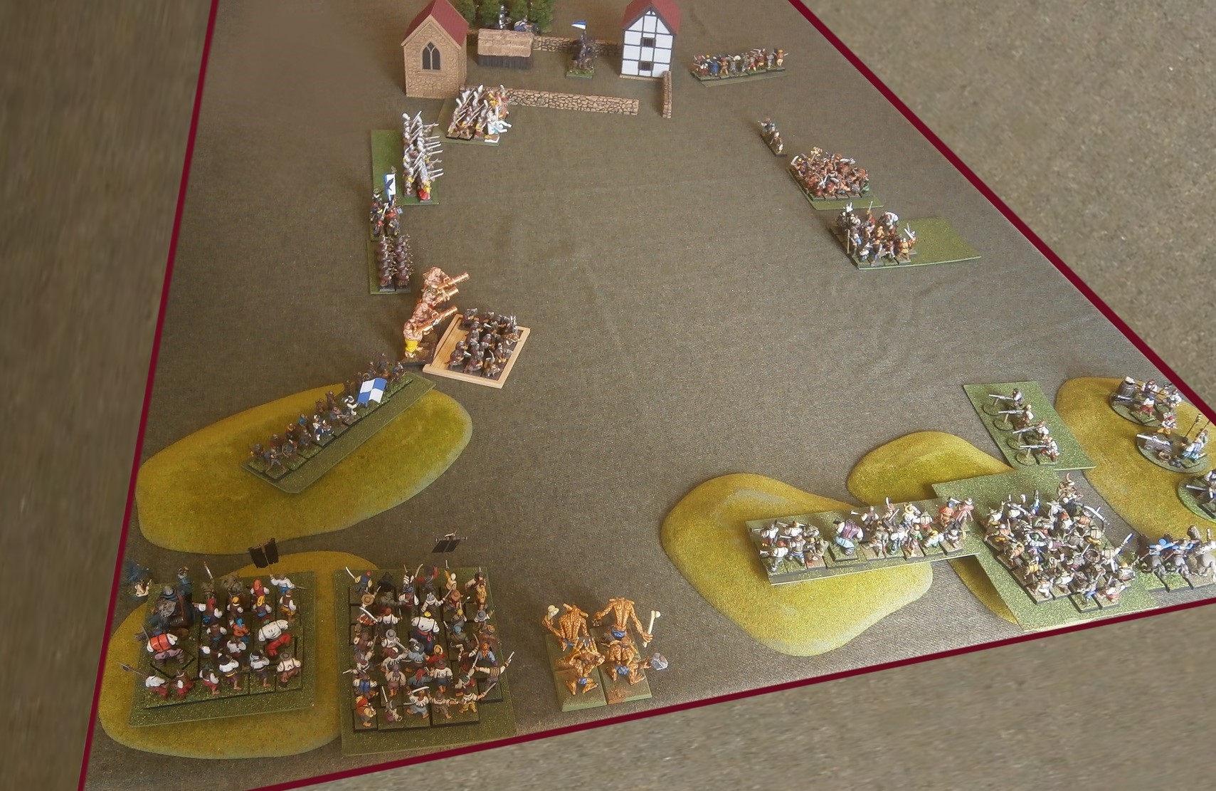 Losing no time, the Sartosans moved on, the trolls outstripping the rest to close on the dwarfs, while Kroll’s axe-weilding warriors came very close to the crossbow regiment’s flank.