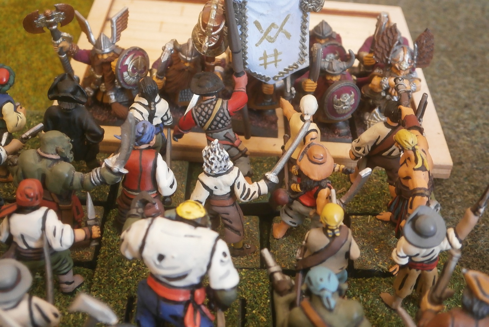 Beside them came the rest of Volker’s crew, a large company armed with blunderbusses. Out on the far right of the relief force advanced Captain Fark’s goblins, ordered to that position by Volker, who wanted to avoid any further outbreak of greenskin squabbling hindering his victory today.