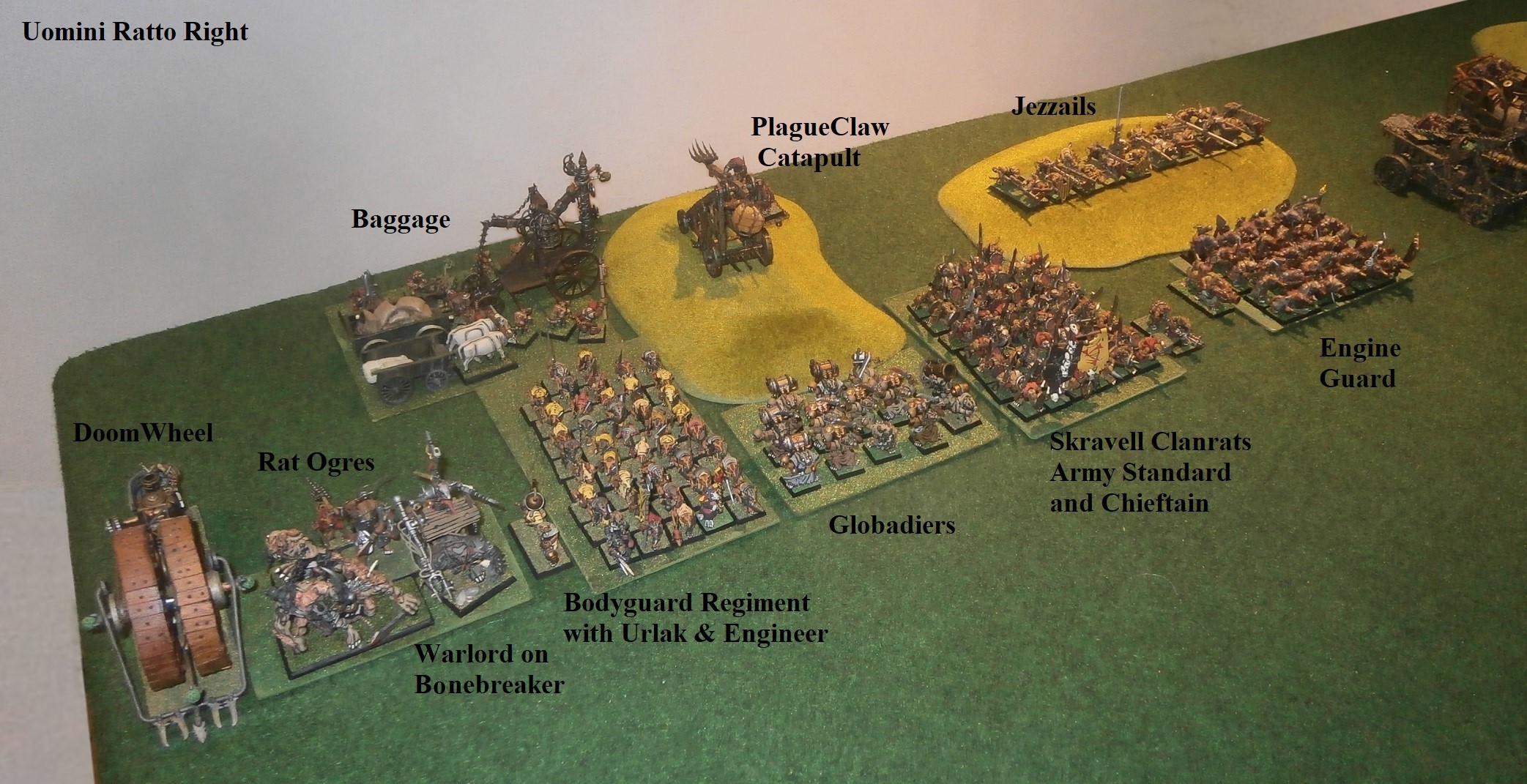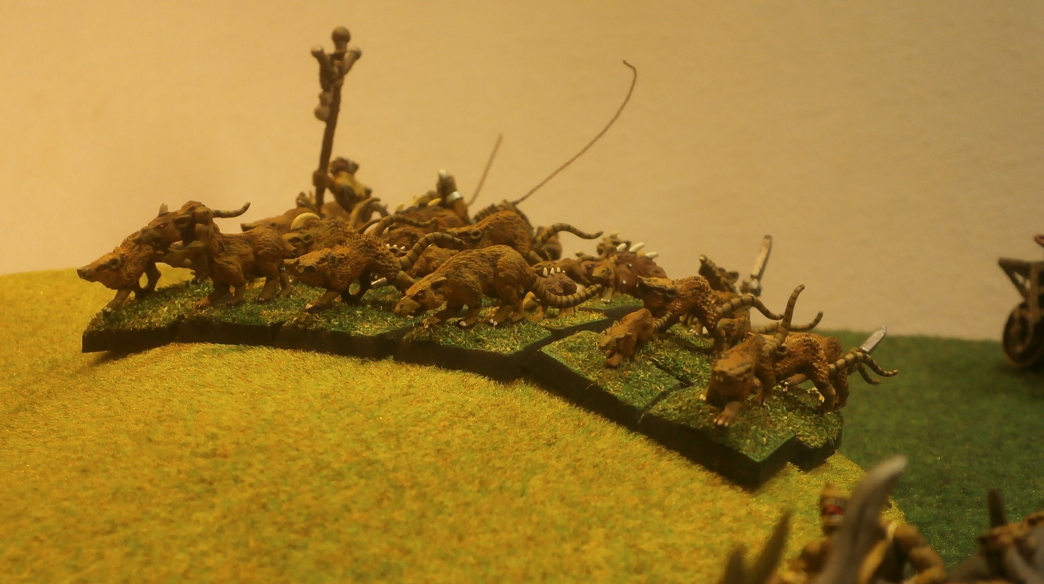 To their immediate right was a body of brute-rats, one of which carried a palanquin, upon which rode a banner bearing armoured chieftain.