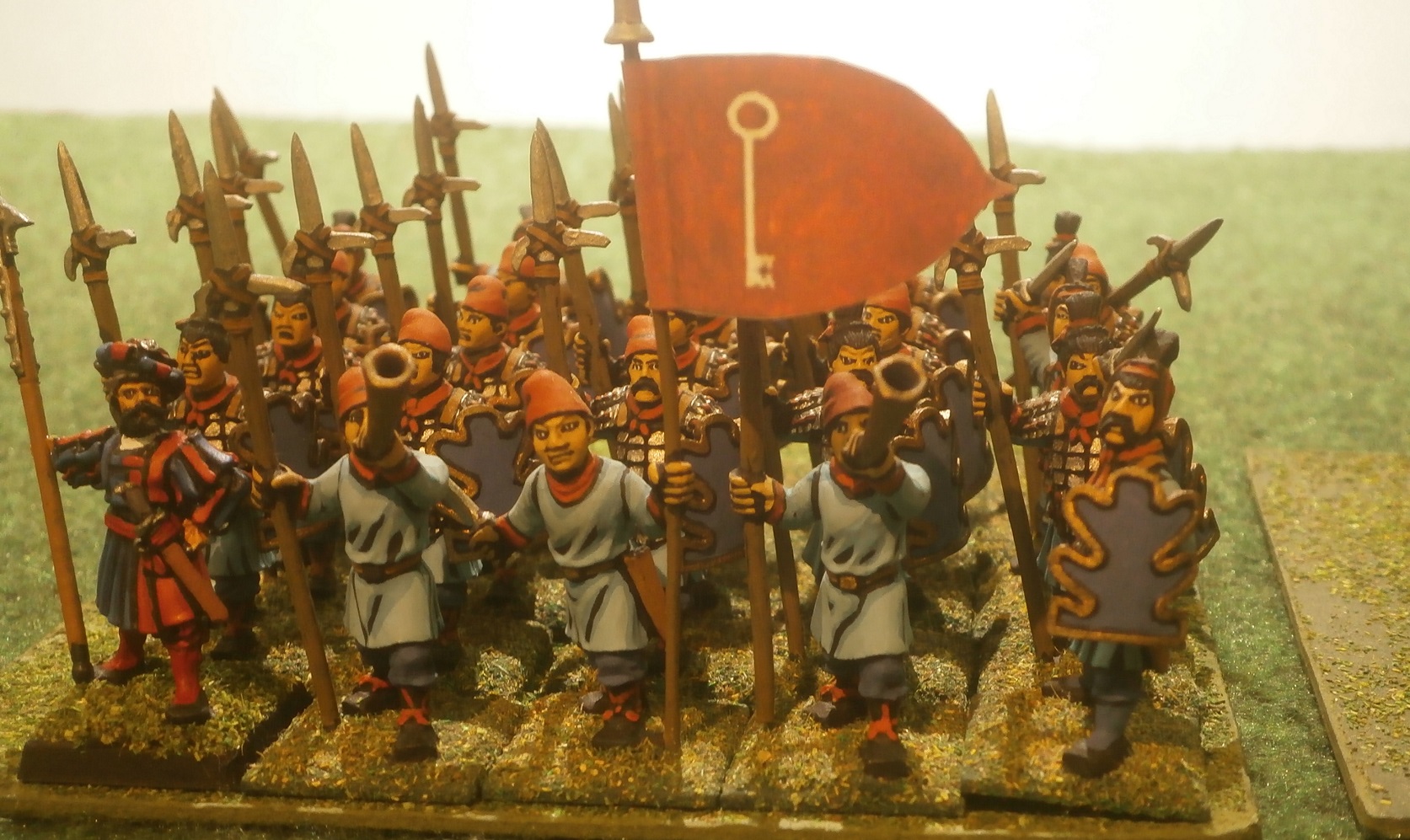 Otherwise, the Reman force was composed of the realm’s marching army, and the standing force of Palomtrina, the latter being a company of well-drilled handgunners clothed in the colours of Remas.