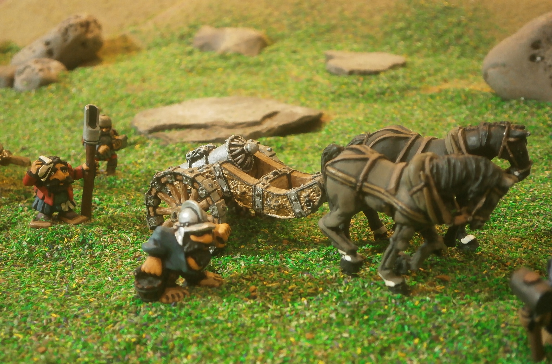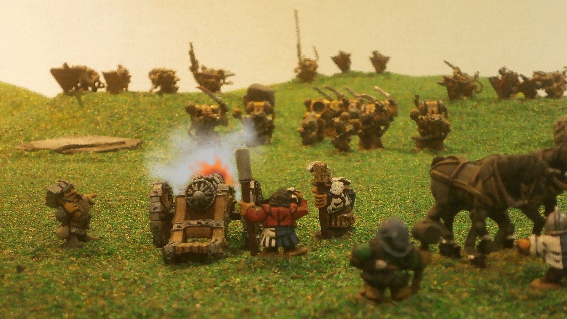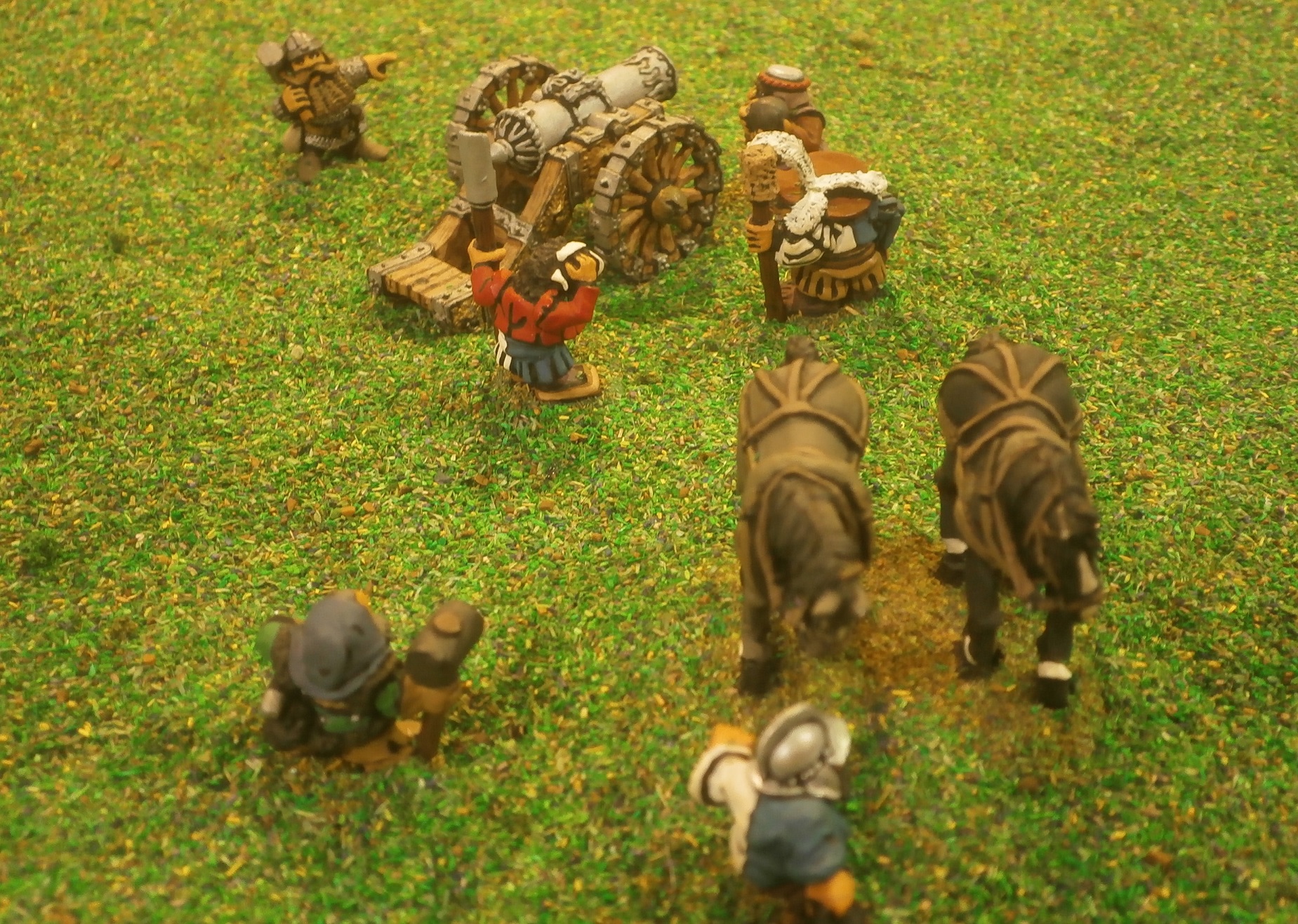 But the messengers quickly learned that the dwarves hauling the heavy piece, being both the gun’s crewmen as well as those from the bolt thrower they abandoned on the field of battle, were in a somewhat contrary mood, and not at all keen to destroy their charge.